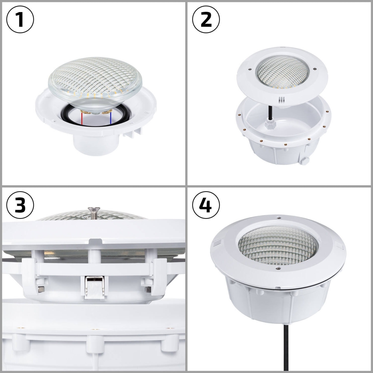 Fabriquée en verre haute résistance, ce spot LED PAR56 18W est complètement étanche IP68 et supporte une immersion complète et continue. L'installation  se fait en encastrement dans une niche prévue à cet effet et nécessite un transformateur 12V pour adapter la tension de l'installation en toute sécurité.