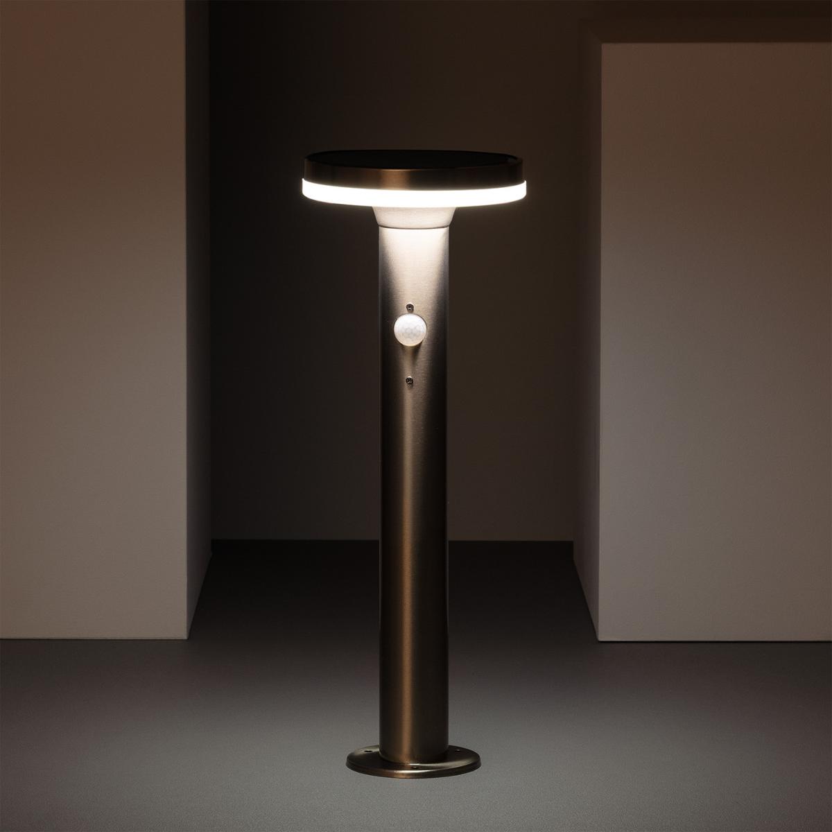 Balise LED Solaire Inox Helios 45 cm avec Détecteur de présence PIR