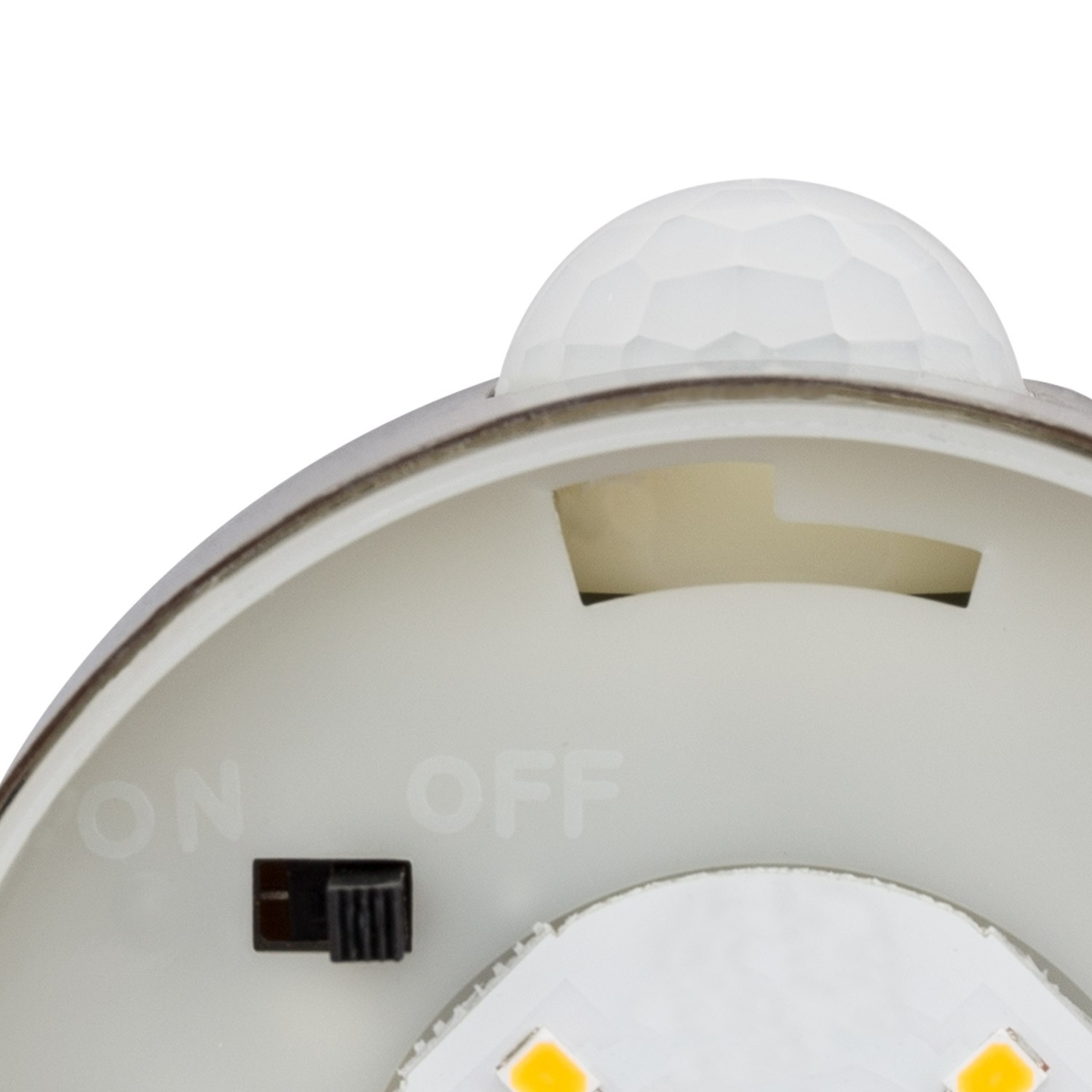 Le capteur crépusculaire se déclenche lorsque la luminosité est faible < 10 lux. L'applique reste éteinte et ne s'allume que lorsque une source de chaleur est détecté par le capteur Infra Rouge dans un rayon de 5 à 6m environ. Au bout de 45 secondes sans détection d'aucune source de chaleur dans le rayon d'action, l'applique s'éteint complètement.