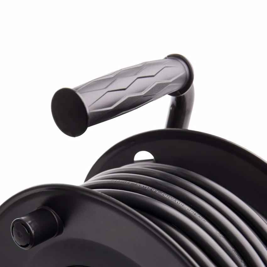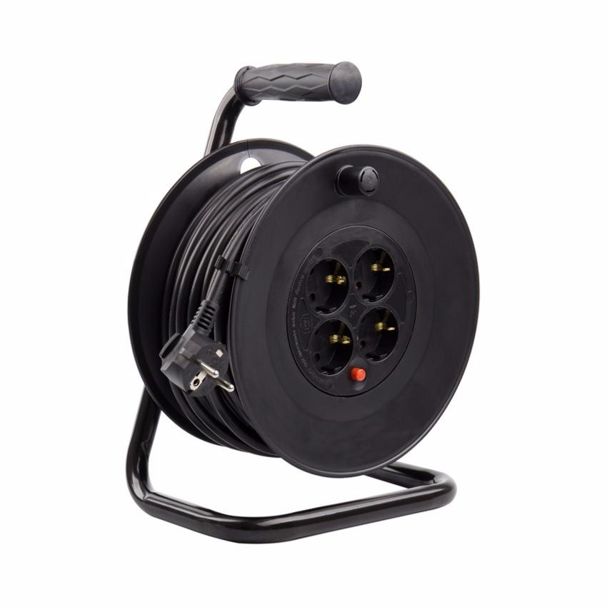 L'Enrouleur Extensible a un câble de haute qualité H05VV-F de 25 mètres (section 3x1.5mm2) et 4 prises Socket (Allemand).