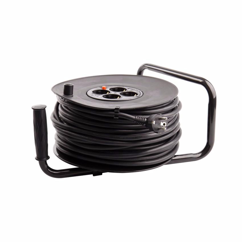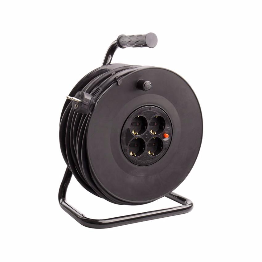 L'Enrouleur Extensible a un câble de haute qualité H05VV-F de 40 mètres (section 3x1.5mm2) et 4 prises Socket (Allemand).