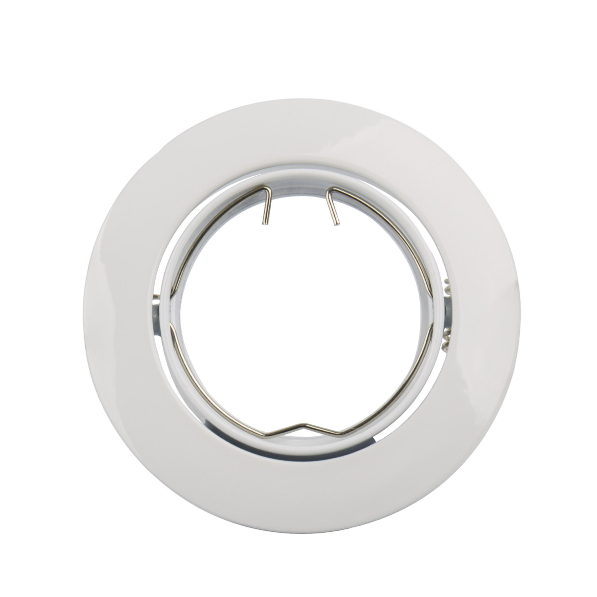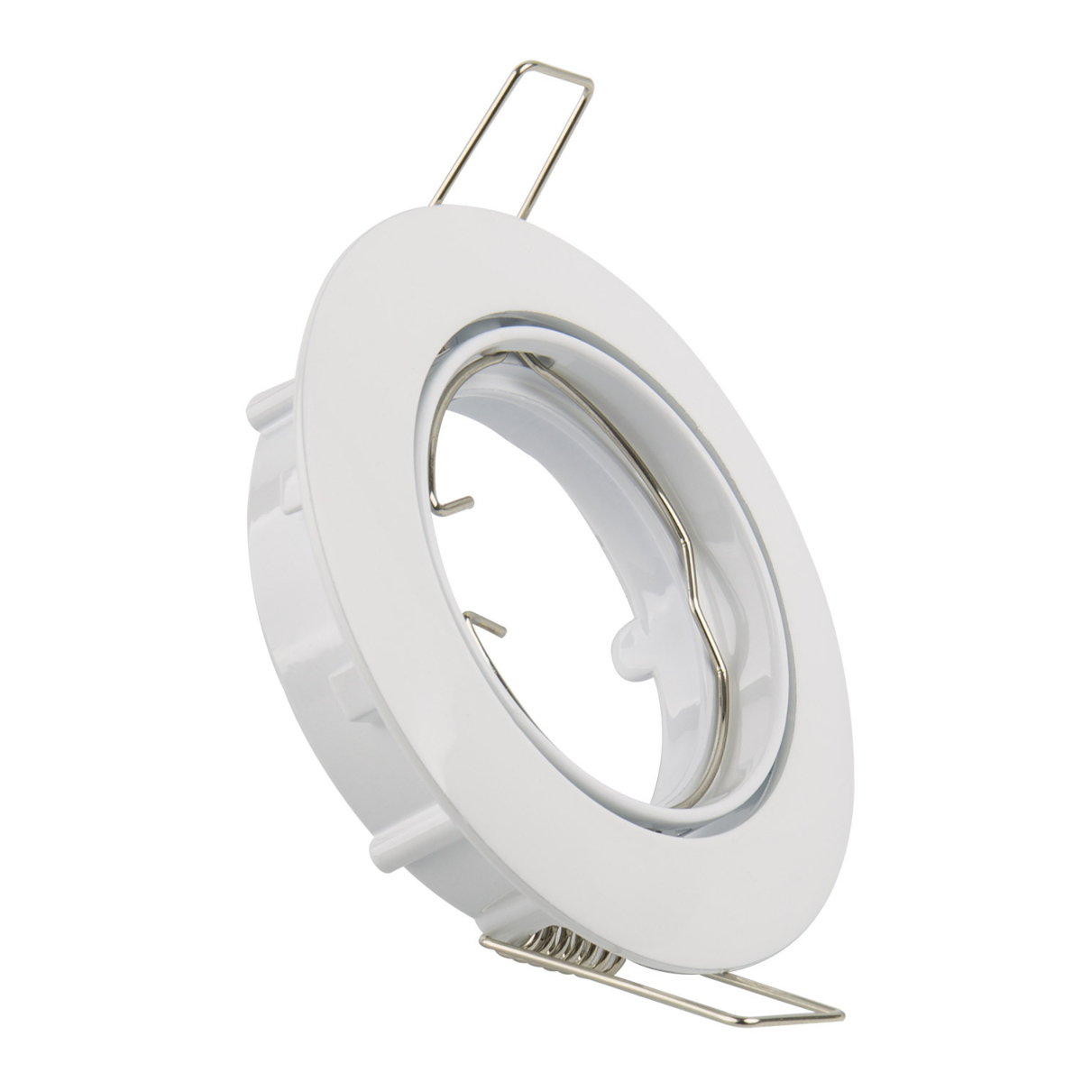 Le Kit Support de Spot Rond Orientable Blanc +Ampoule LED GU10+Douille Automatique est prêt à installer en encastré dans les plafonds.