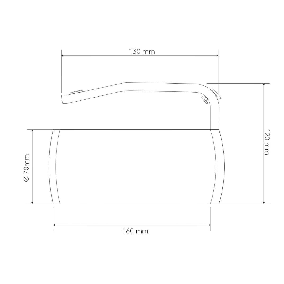 Dimensions Ø70x160x120mm IP