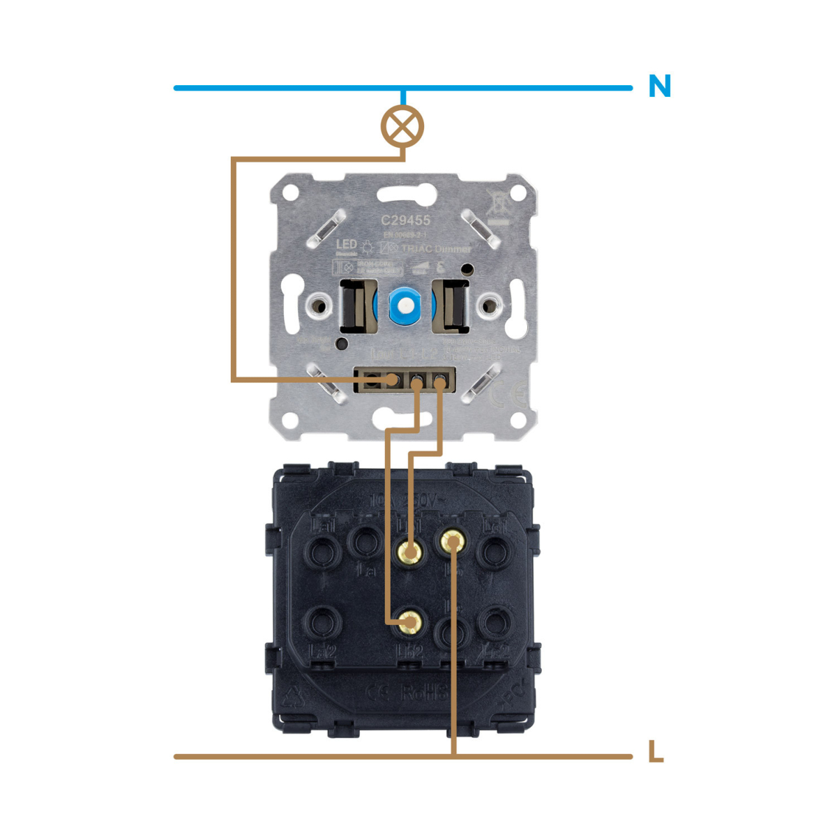 Le Variateur Va-et-Vient Universel LED Triac permet de contrôler tout type d'éclairage acceptant une variation d'intensité de 0 à 100%. Il fonctionne comme un interrupteur pour éteindre ou allumer depuis 2 points différents d'une pièce ( 2 variateurs va-et-vient sont nécessaires)